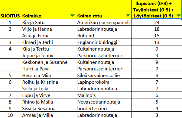 Lista elää sen mukaan, mitä tuloksia on toimitettu!