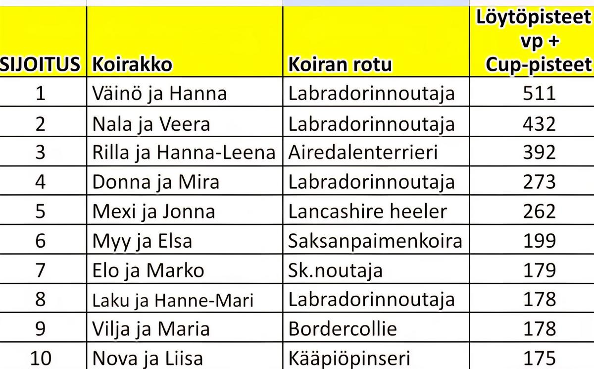 Lista elää sen mukaan, mitä tuloksia on toimitettu!